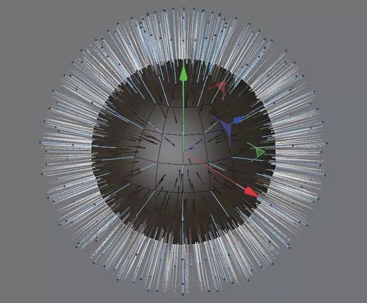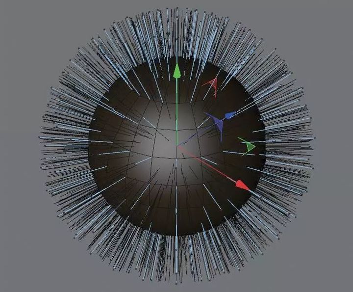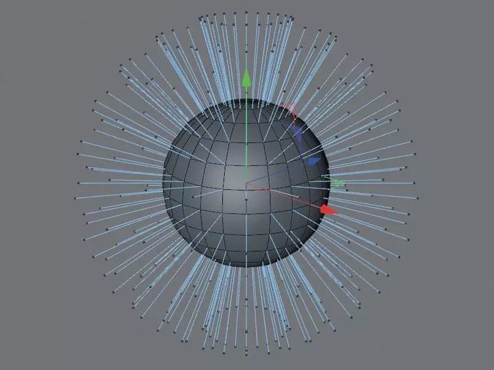 选中需要添加毛发的对象,然后执行“模拟-毛发对象-添加毛发”菜单命令,即可为对象添加毛发,添加的毛发会以引导线的形式呈现,如图所示。