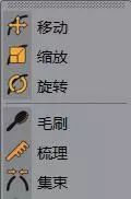 “ 模拟-毛发工具 ”菜单中列出了编辑毛发的工具,可以对毛发进行卷曲、拉直等操作,如图所示。