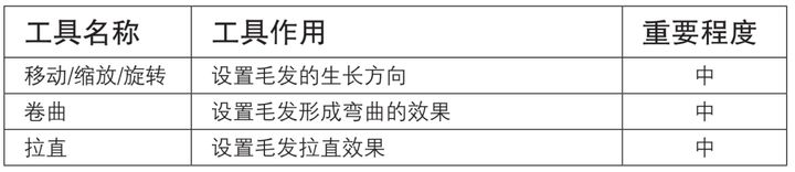 “移动/缩放/旋转”工具用于设置毛发的生长方向,如图所示。