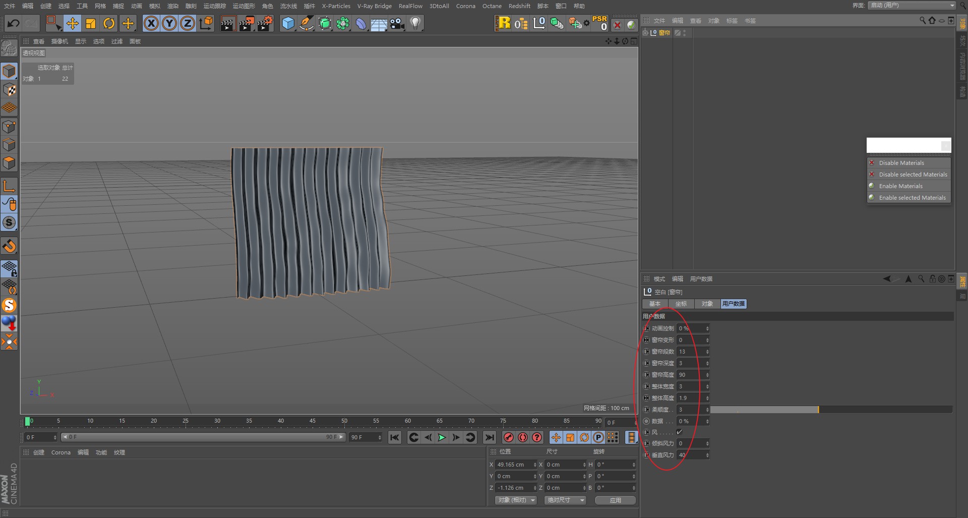 该工程可自由控制窗帘打开关闭、风力、柔顺度、高度、宽度等参数;