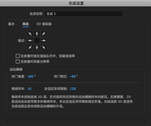 合成设置-高级中选择在嵌套时保留帧速率以及分辨率这俩选项,可以使该合成(嵌套合成)不会继承包含他的合成(下称:包含合成)的分辨率和帧速率,这对制作一些特殊效果很有必要。