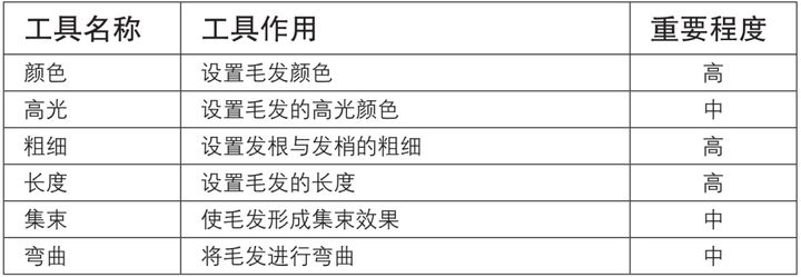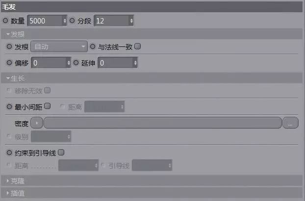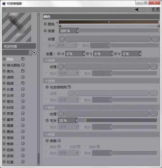 颜色:毛发的颜色,通常用渐变色条进行设置。