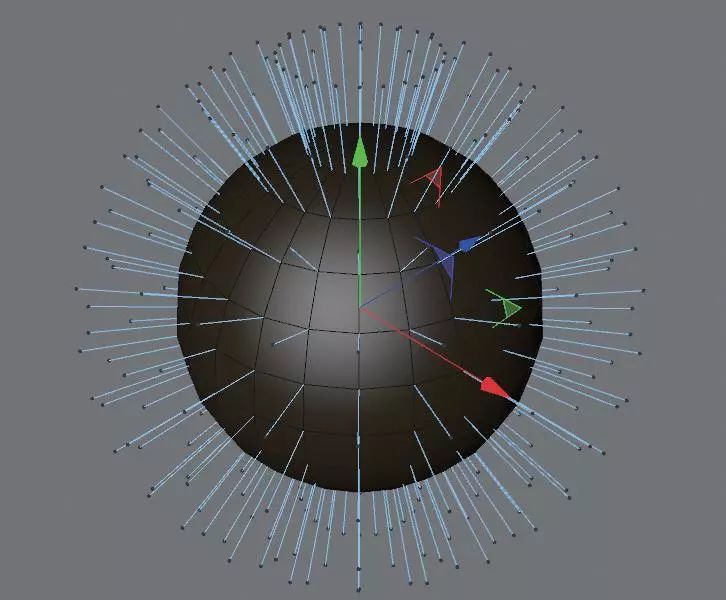 选中需要添加毛发的对象,然后执行“模拟-毛发对象-添加毛发”菜单命令,即可为对象添加毛发,添加的毛发会以引导线的形式呈现,如图所示。