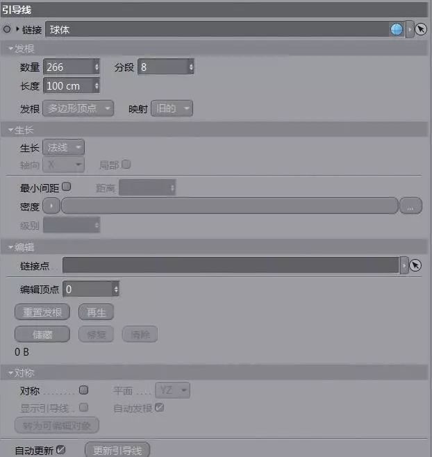 生长:设置毛发生长的方向,默认为对象的法线方向。