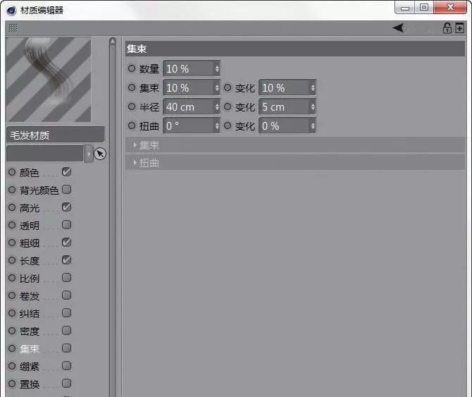 “集束”选项用于使毛发形成集束效果,参数面板如图所示。