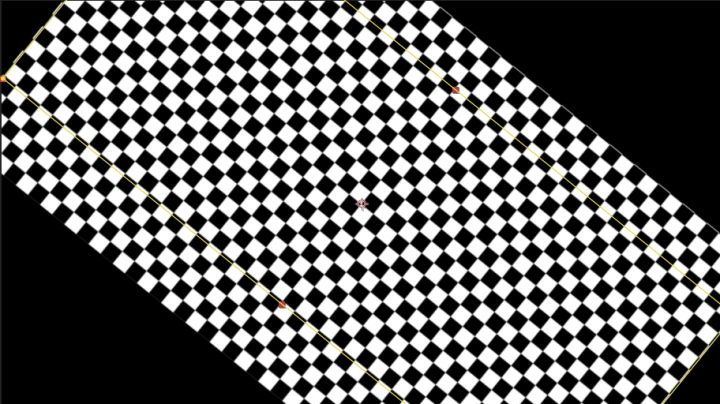 所以如下图:黄色线框显示的是蒙版大小,蒙版并未控制住棋盘效果,却可以被旋转控制,这就是渲染顺序不同导致的。