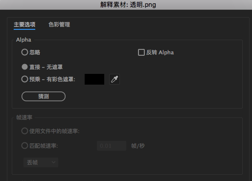 右键点击素材-解释素材,对话框如图: